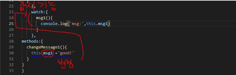 <h1 :class="msg"> h1에 class를 추가할시