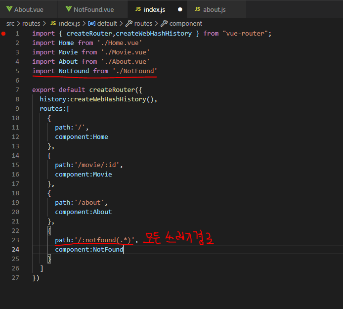 page404 route 연결 및 omponents에 NotFound.vue만들기
