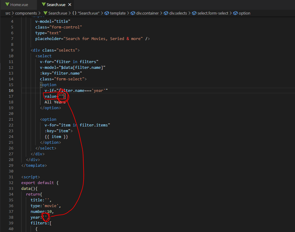 movie.js의 mutations와 actions를 실행하는 방법search.vue의 click으로 변수들 searchMovies로 보내기search.vue에서 받은 변수들을 할당하고 movie.js에서 변경하게 해주는 유일한 mutations를 통해 search를 다시보내고 할당한다.